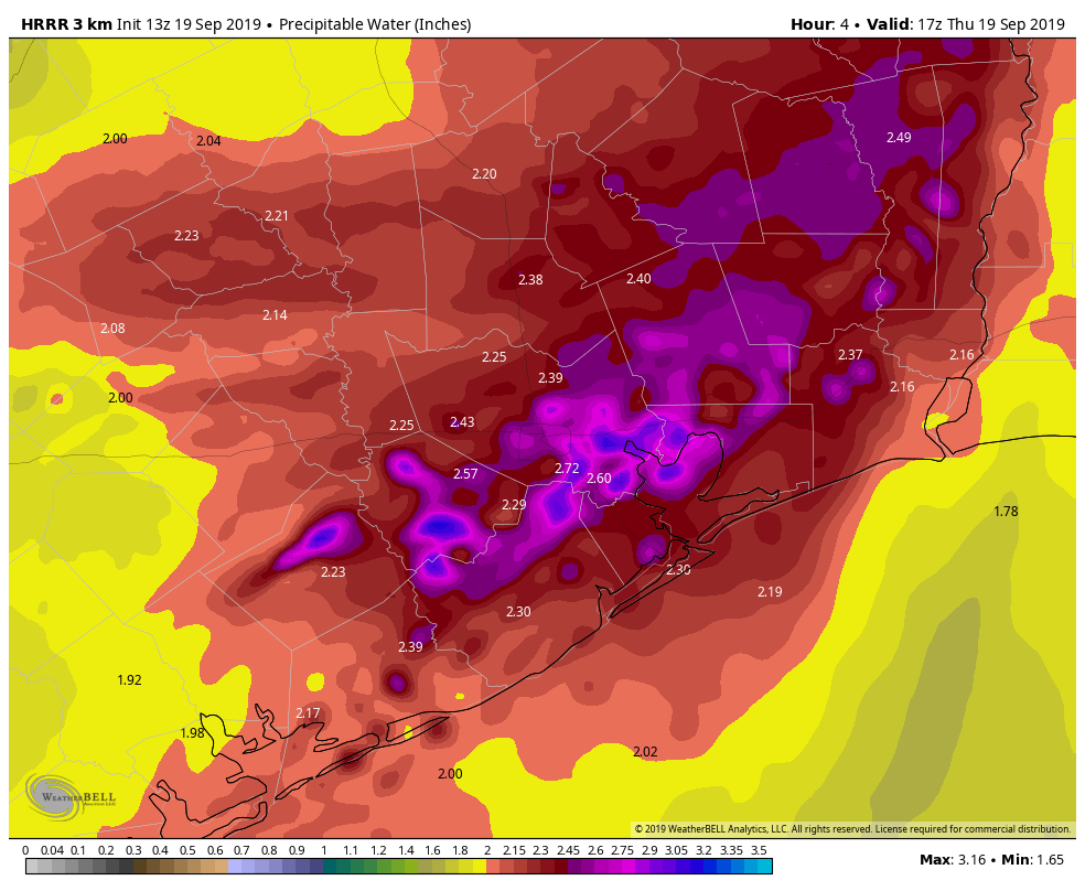 PWATs are pretty wild today. Lots of moisture to support major hourly totals.