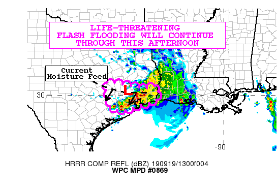 southeast toward Hamshire, TX. This moisture feed is expected to