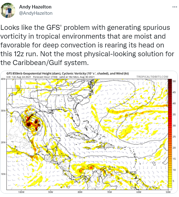 Yep! Here is an explainer, attached.weatherguy425 wrote: ↑Tue Aug 24, 2021 11:44 amI remember a Twitter conversation amongst Mets as Elsa was approaching Florida - the GFS may be struggling with deep convection as it approaches the coastline - developing (in reality) non-existent centers and competition between areas of low pressure.