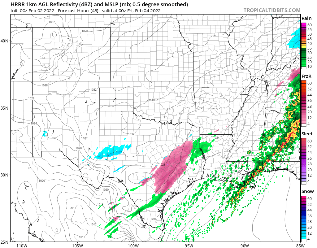 Looking at the forecast models, the wintry precipitation northwest of Houston at around 6:00 PM. This looks like a night event.