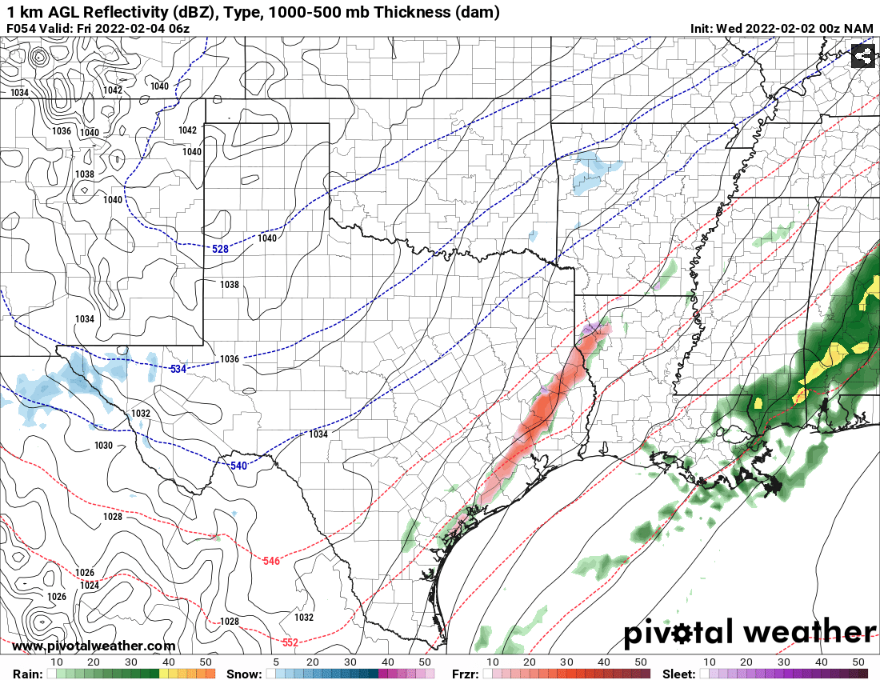 "As I've been saying, this will be a close call when it comes to icy conditions in Southeast Texas, and I encourage you to remain weather aware. If the freeze line arrives quicker than we are expecting OR we get more precipitation Thursday night than we are currently expecting, that would increase the chances of accumulating ice in our part of the state. Otherwise, we'll skirt by with a cold rain and a few mornings with a light freeze/frost."