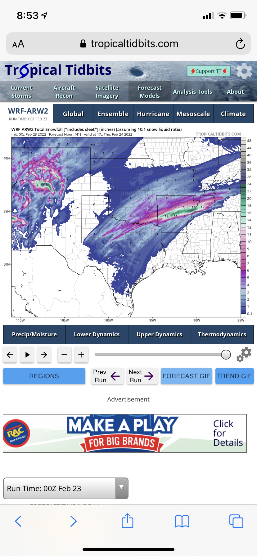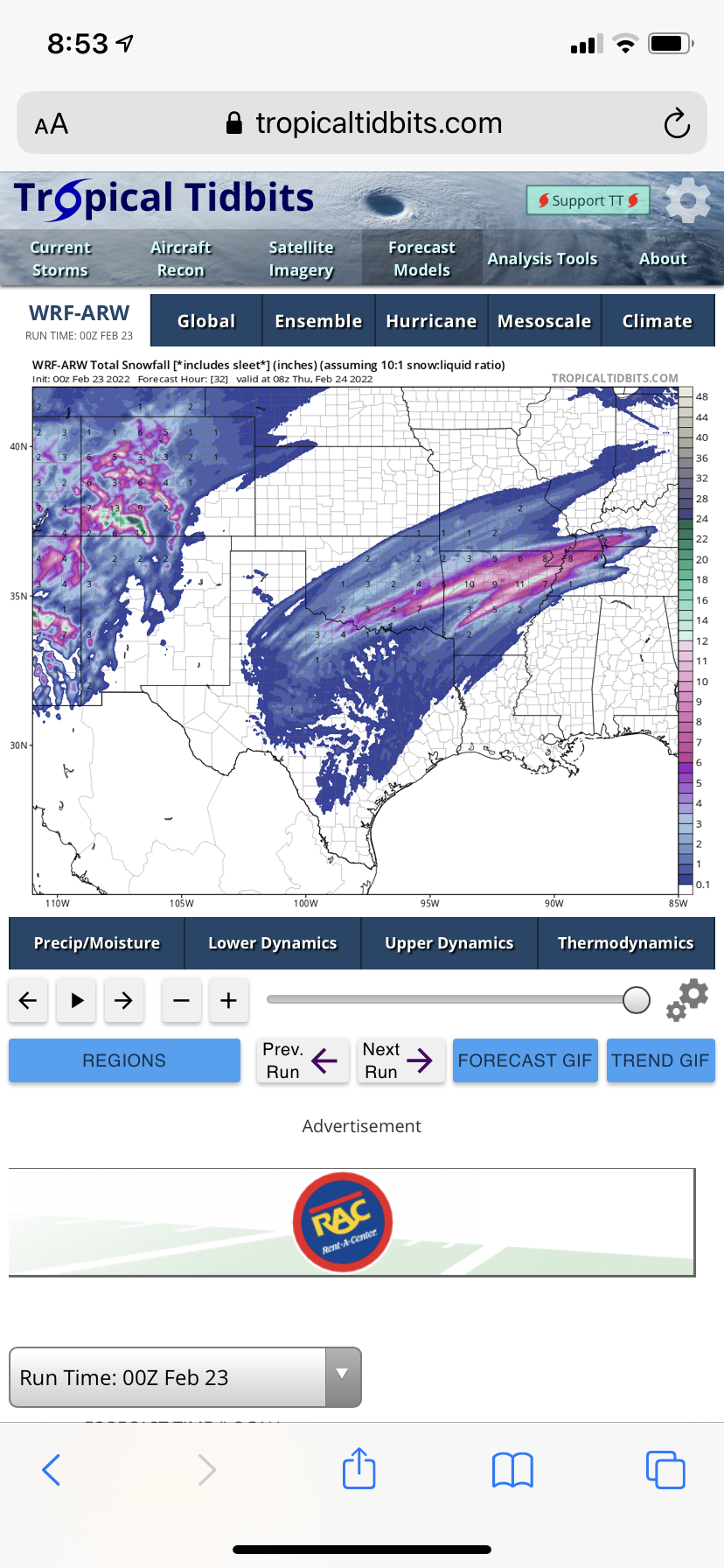Does this include freezing Rain/Ice accumulation? If that just Snow, the all of the counties south would see iceStratton20 wrote: ↑Tue Feb 22, 2022 9:18 pm Yep both wrf models showing frozen precip getting very close to some of SE Texas counties, the wrf2 has frozen precip lasting nearing 36 hours, that would be brutal