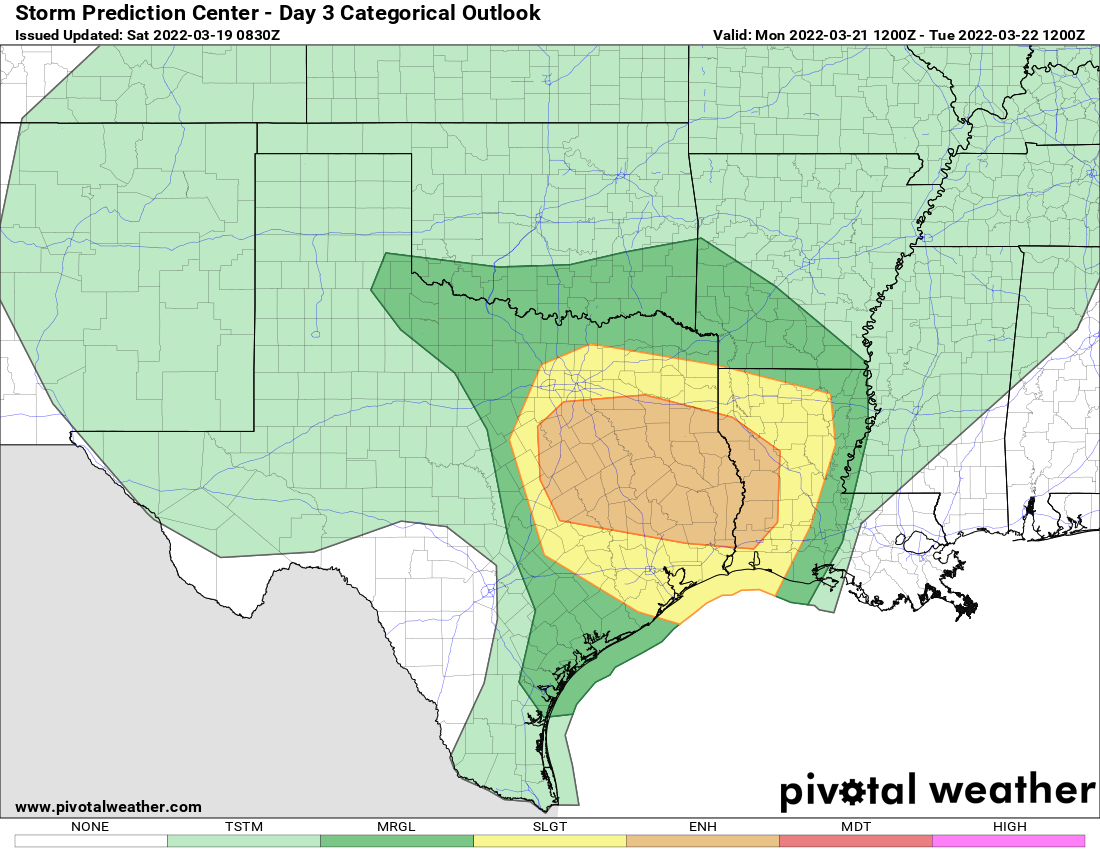 SE Texas may get the Moderate risk of severe storms, Houston may get the Enhanced Risk