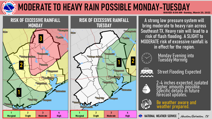 eastern Texas and into western Louisiana starting Monday afternoon.