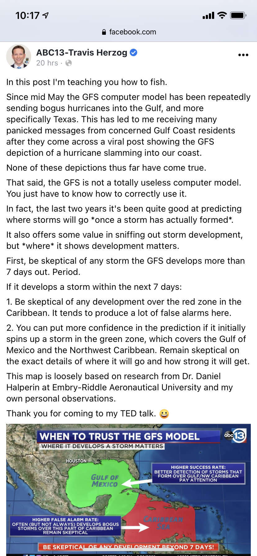 A good read from Travis Herzog regarding the GFS spinning uo fantasy storms, drives me crazy when someone post a single model run of the GFS in fantasy land) on social media without looking at the time stamp lol, like this mornings 06z run has a near cat 3 hitting the upper texas coast at hour 360, unfortunately I can guarantee some knucklehead is going to post that on social media