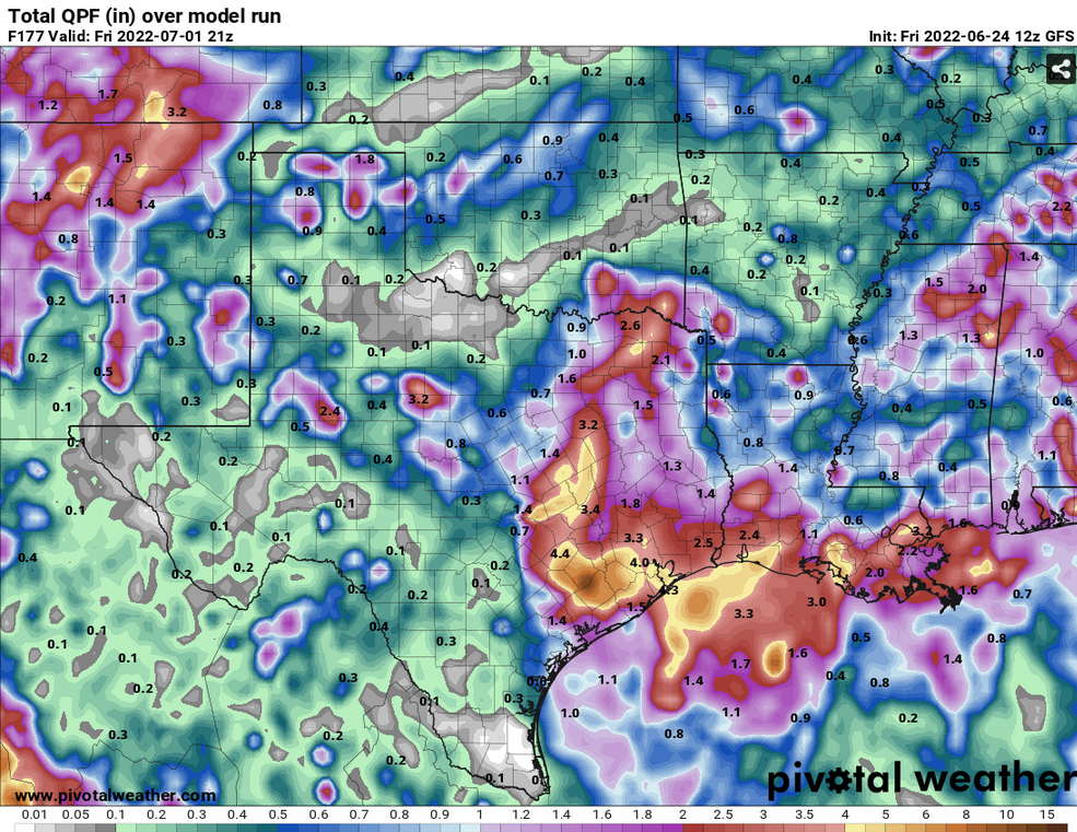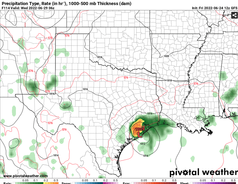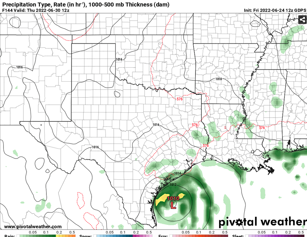 Stratton20 wrote: Fri Jun 24, 2022 5:35 pm 18z GFS still develops a weak depression/ storm as it moves west towards matagorda bay