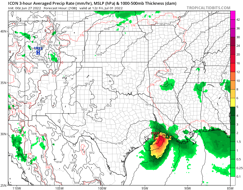 0Z ICON into the Sabine as a tropical storm.For right now the ICON still remains an outlier as all the other models are much further west.Lets see what the rest of the models show tonight.