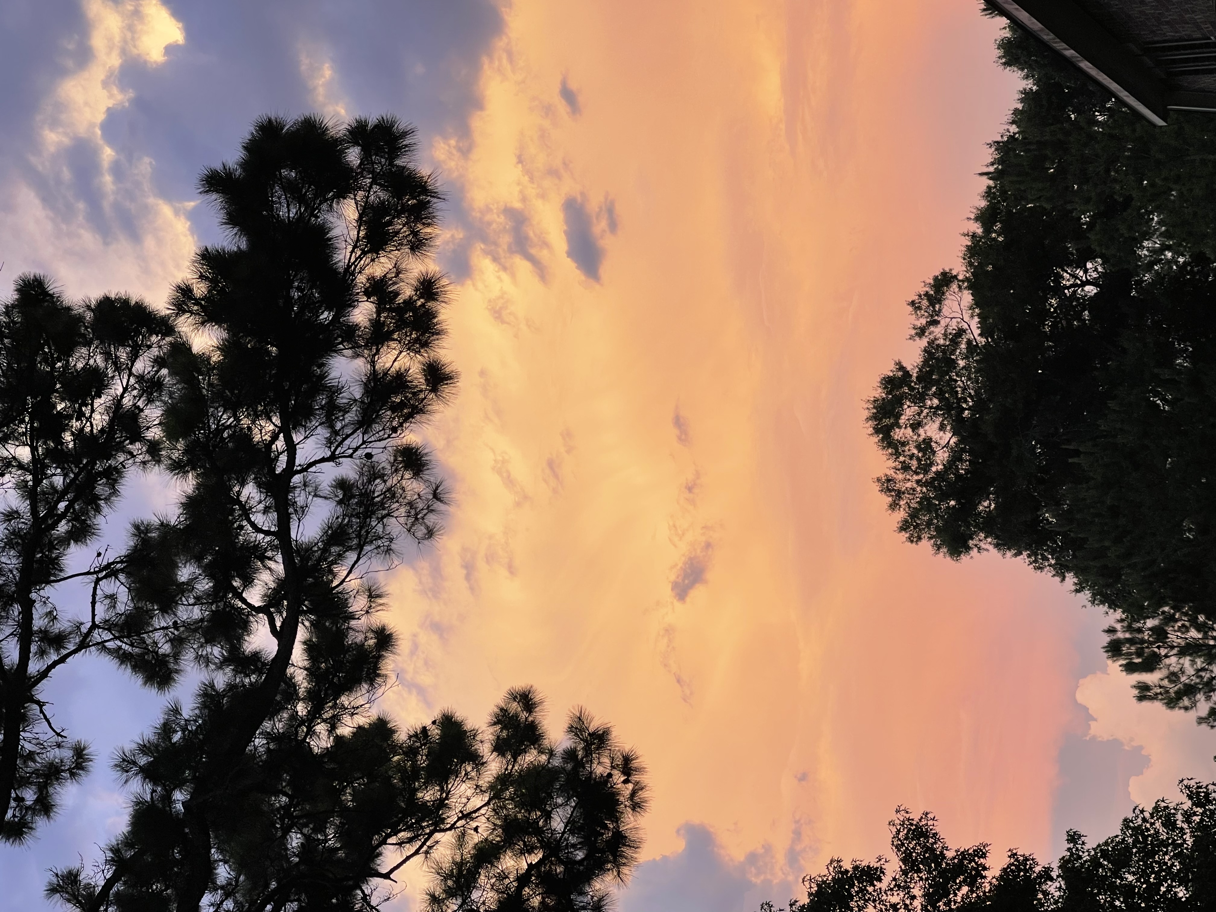 I know you said that the dryness in your area was getting bad. But I'd almost say that the scene in that photo, with trees combined with thunderheads, looks perfectly lush (though the silhouette view probably conceals any desiccation).