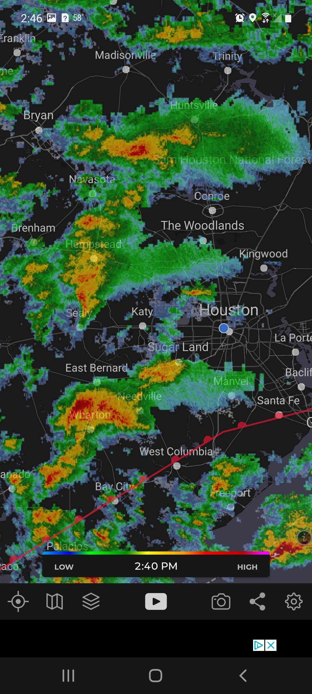mostly affecting HOU, LBX, GLS. Some may move N into IAH. Some of