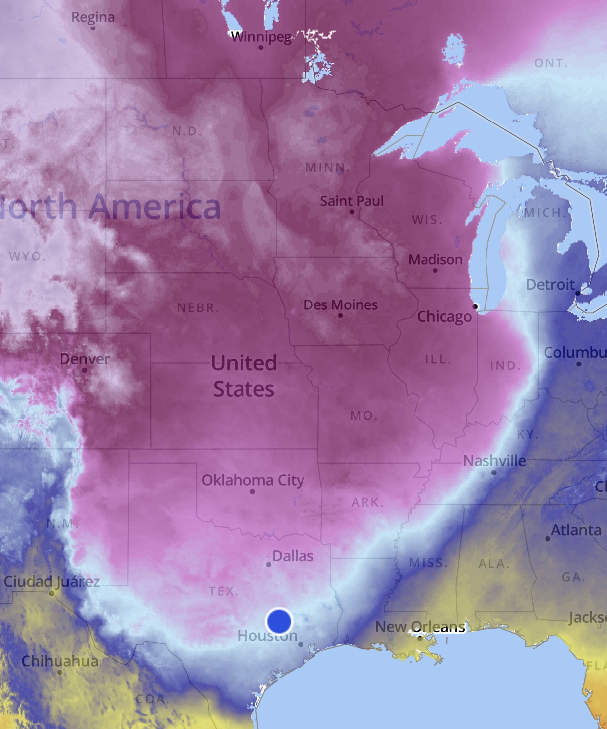 The freezing line is headed toward Corpus. There's a pool of really cold air west of HOU heading south.