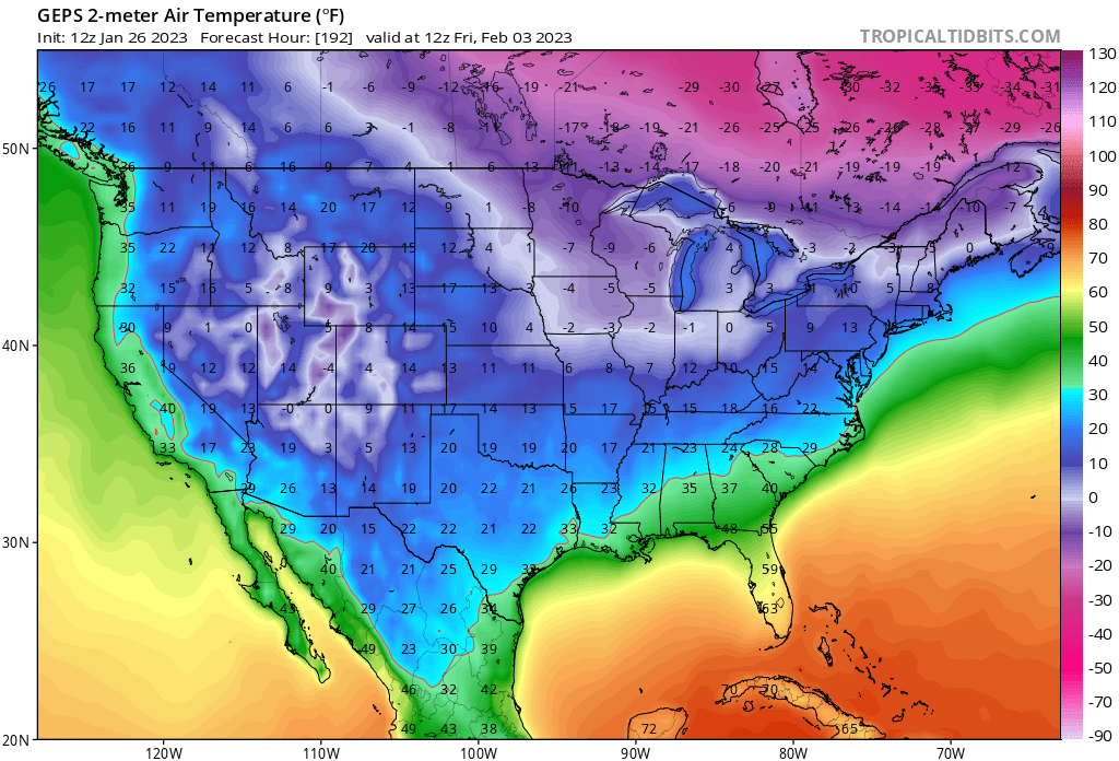 Stratton20 wrote: Thu Jan 26, 2023 9:21 am the GFS continues to see no arctic air, doesn’t make much sense to me given all the support lol, i know its typical for this to happen in models, but it just keeps all the cold air locked up north