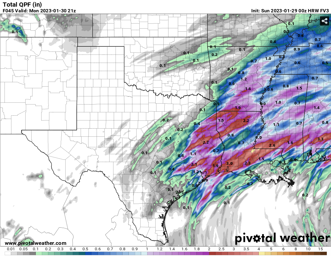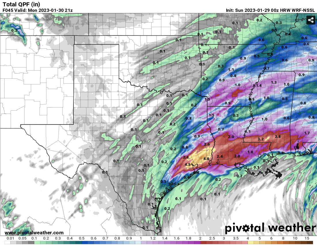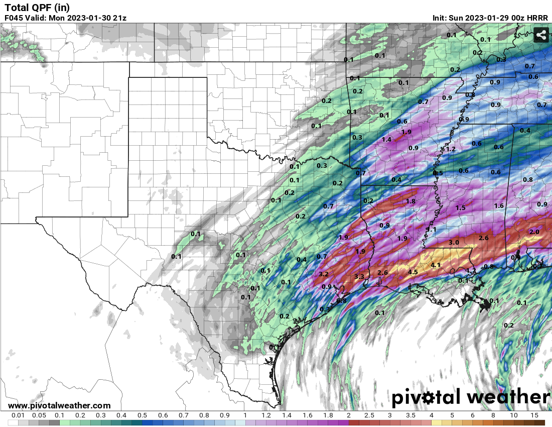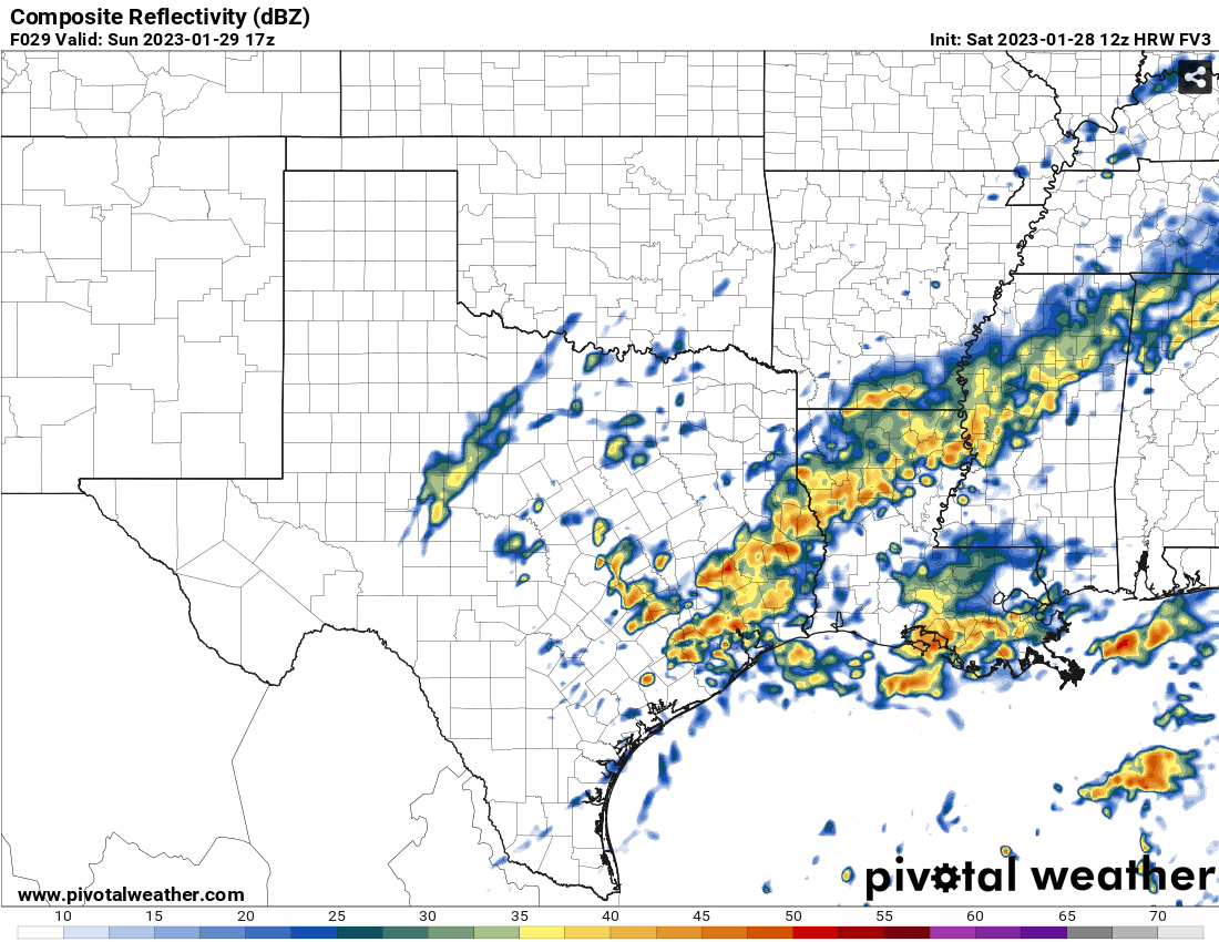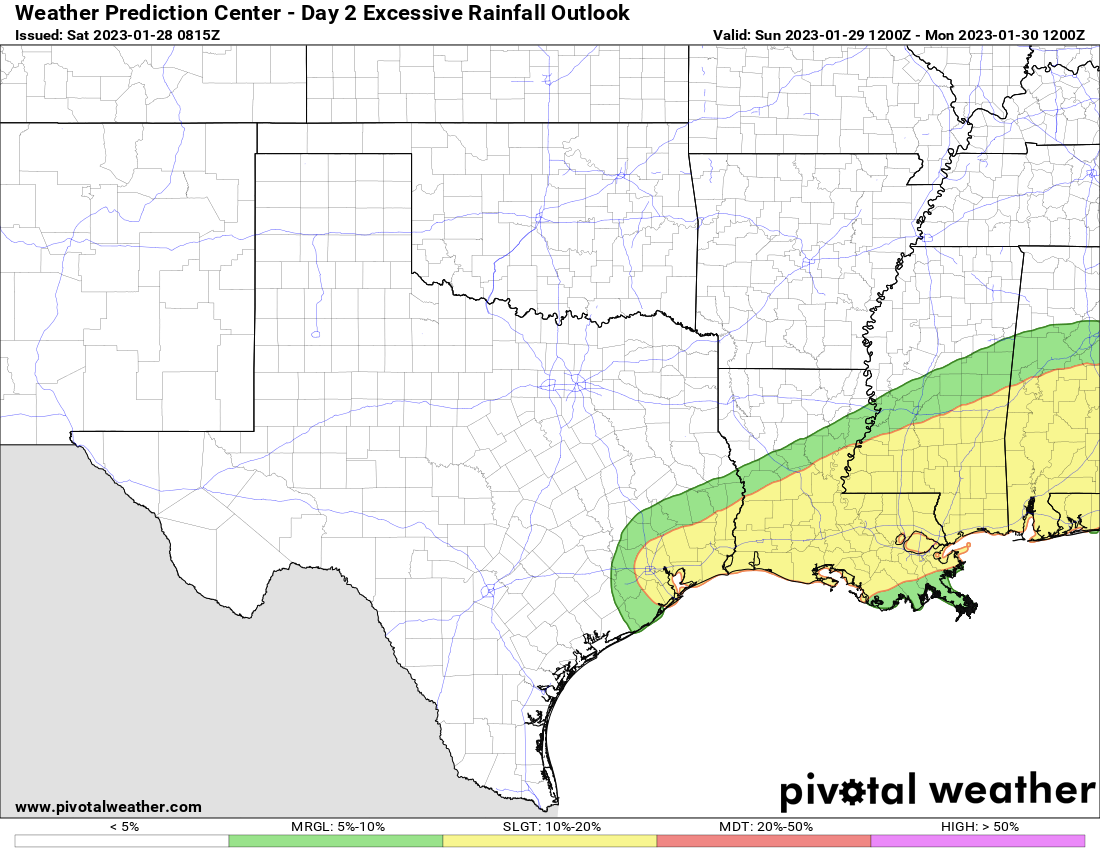 I was mainly talking about my area. I should’ve mentioned that. My bad.don wrote: ↑Sat Jan 28, 2023 12:46 pmI don't see that...I guess it depends where you're located.For the eastern half of SE Texas (Houston and points east) rain chances still look pretty good,with most models showing widespread thunderstorms developing tomorrow morning/afternoon.Could be some localized street flooding also tomorrow.