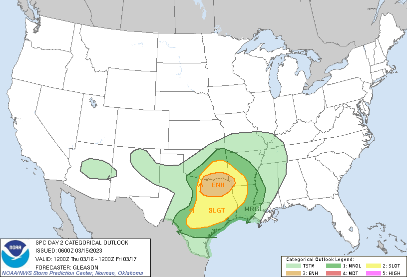 Yep, I'm in the severe weather potential for Thursday.don wrote: ↑Mon Mar 13, 2023 9:15 am Severe weather may be on the menu later this week.With decent shear and no cap in place.