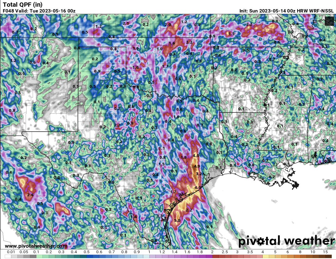 869MB wrote: Sat May 13, 2023 11:47 pm What jumps out at me with some of the latest mesoscale models forecasted 48hr QPF totals is the low accumulations over Central TX, South Central TX, and The TX Big Bend areas…The same areas that were forecasted to receive some fairly healthy rainfall amounts earlier in the week and just a day or two ago.