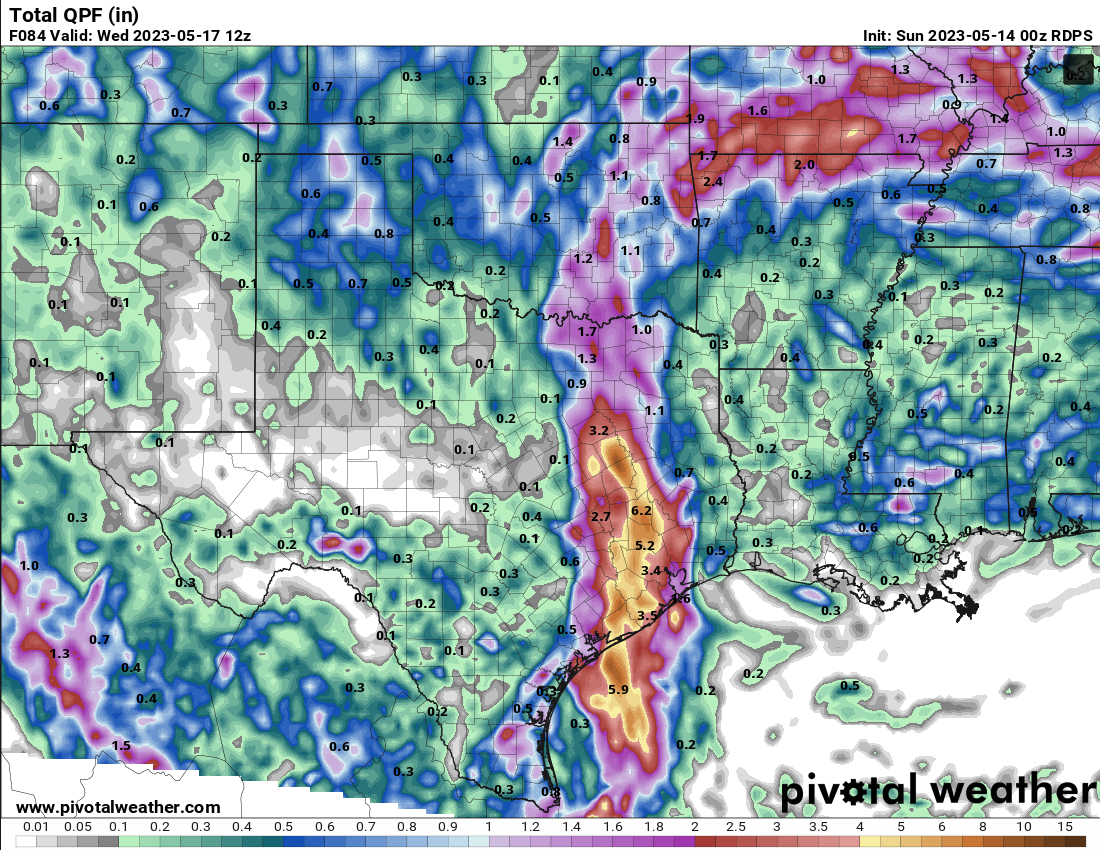 The FV3 model has more than 14 inches in portions of Wharton and Colorado counties.(FWIW) It will be interesting to see what the 0Z runs show.