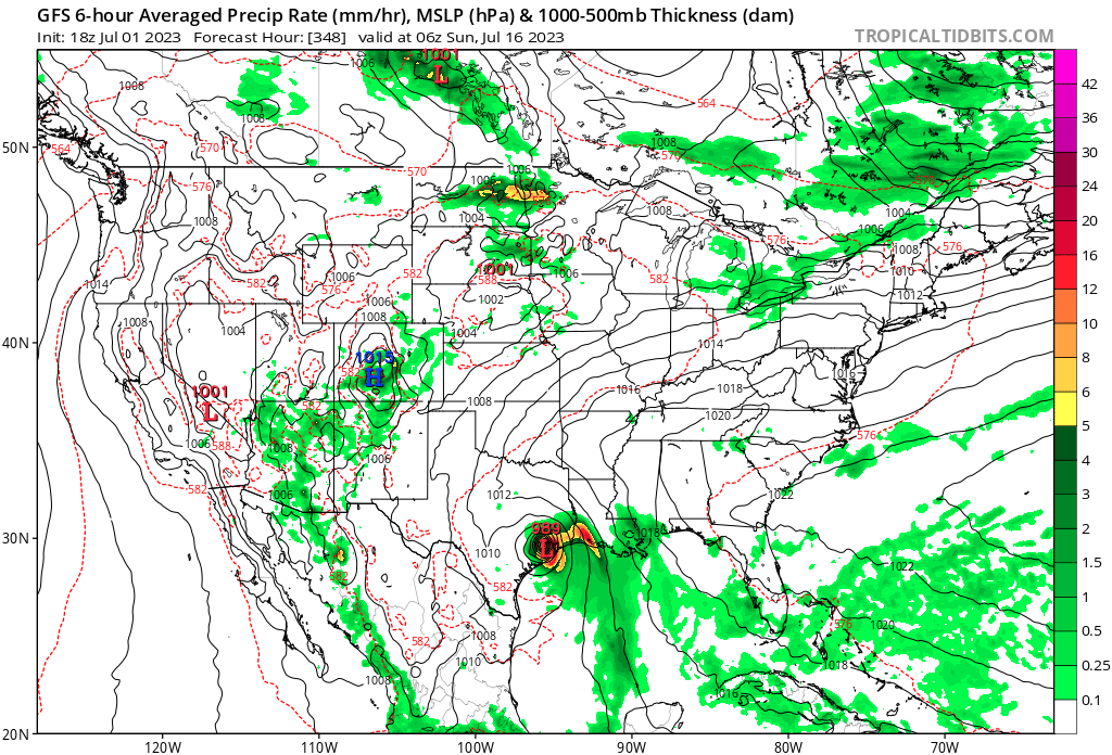 869MB wrote: Sat Jul 01, 2023 8:48 pm For those worried about rainfall prospects, this afternoon’s GFS 18Z run comes to the rescue and brings SE Texas some relief from the heat in 336 hours…