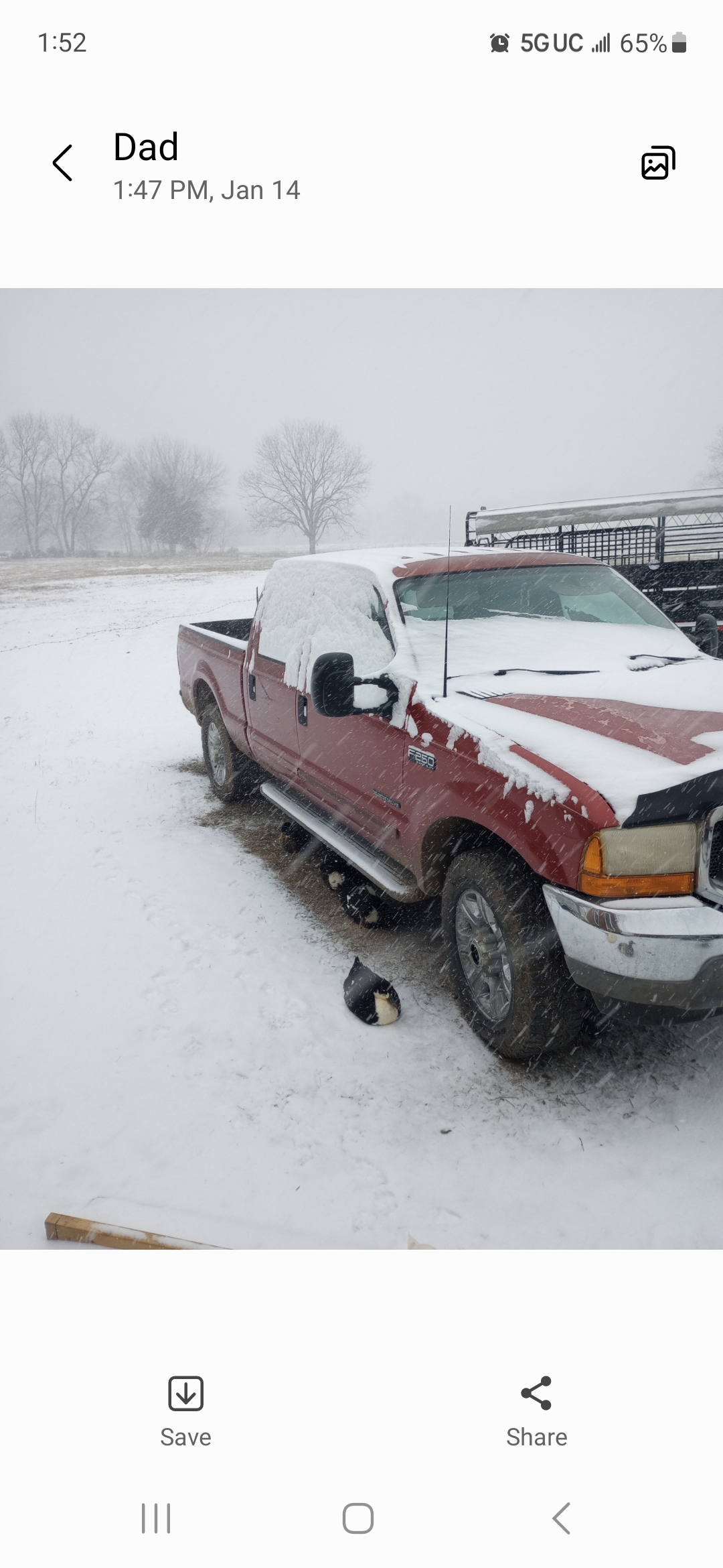 Well I may not get anything but my dad hit the jackpot! He moved to gore, Oklahoma 7 months ago and he sent me this picture..and yes that is a duck by his truck lol