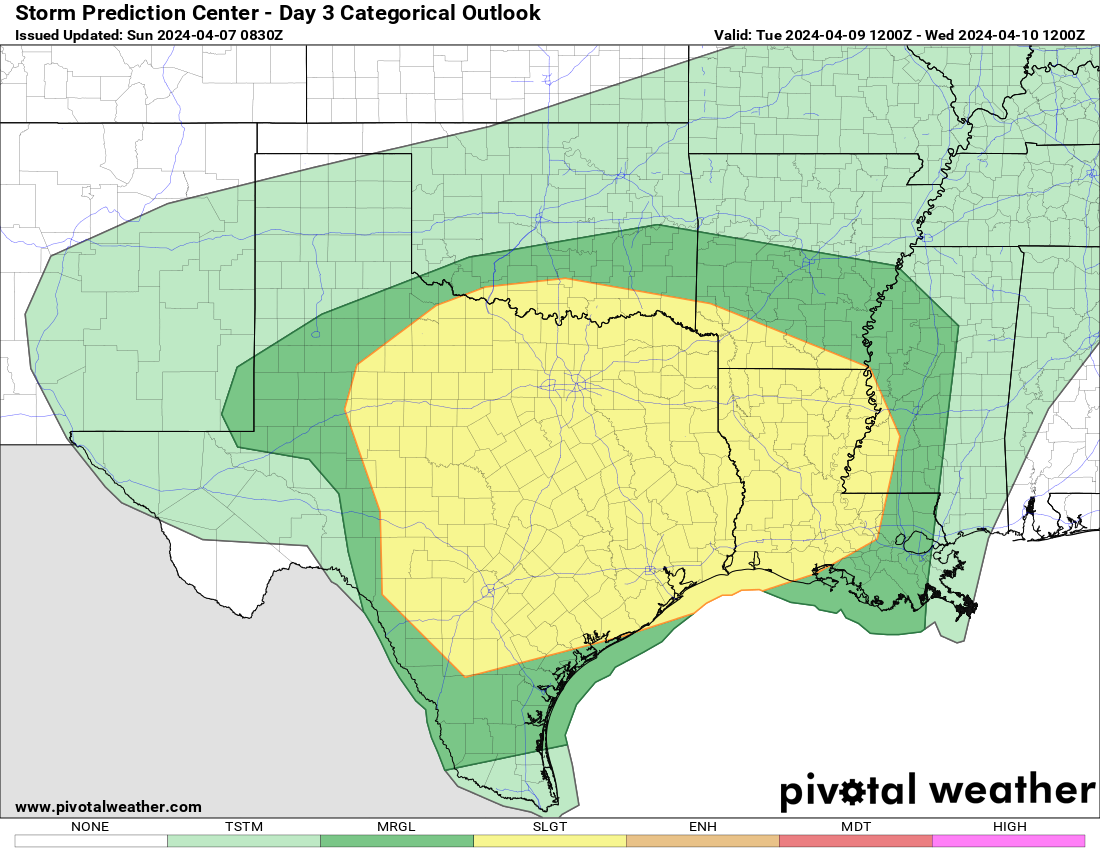 Yeah, I know. But even a week ago they had the darker greens over S TX, which isn’t going to verify.don wrote: ↑Sun Apr 07, 2024 4:49 pmThe CPC map is referring to next weekend and beyond,not this weeks storm system.( it starts on April 13th)