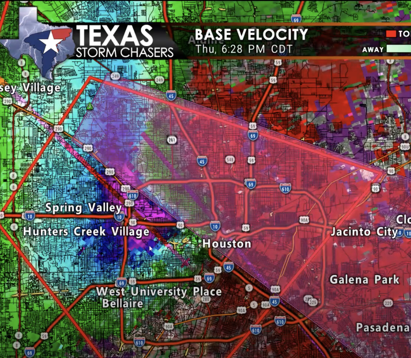 Equivalent of a CAT 2-3 eyewall heading into Houston. Radar indicated winds 120 mph gusts.