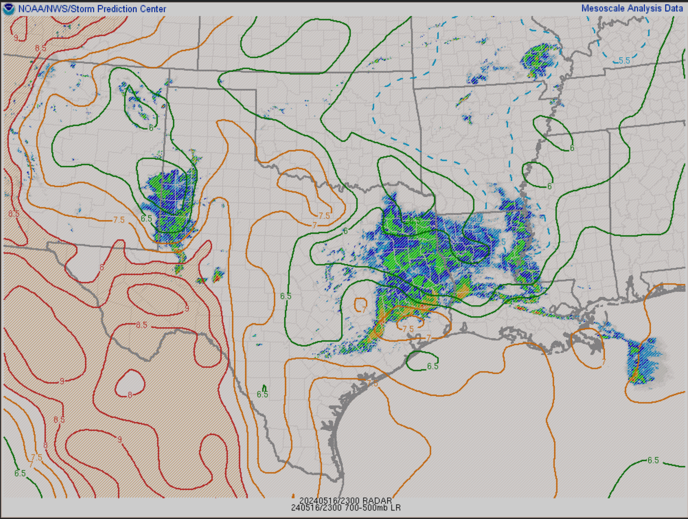 analysis shows an area of low pressure developing in the Texas