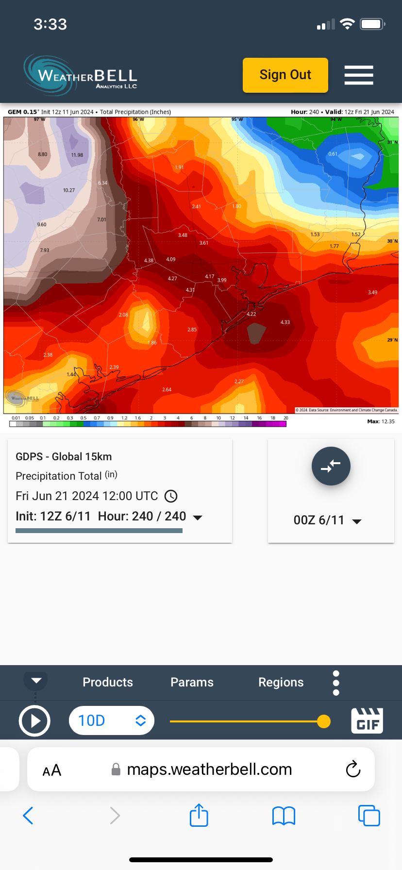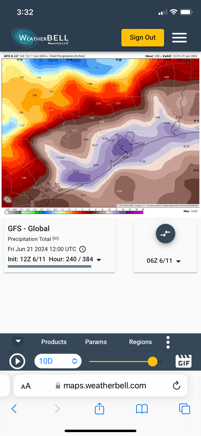869MB wrote: Tue Jun 11, 2024 1:31 am The 6/11 GFS 00Z Run is a very wet run for the Gulf of Mexico and the Gulf Coast States. It even has a 29.97-inch bullseye total along the Louisiana/Mississippi border. Be mindful that these totals will shift around as we draw closer to the moisture surge/possible tropical development....