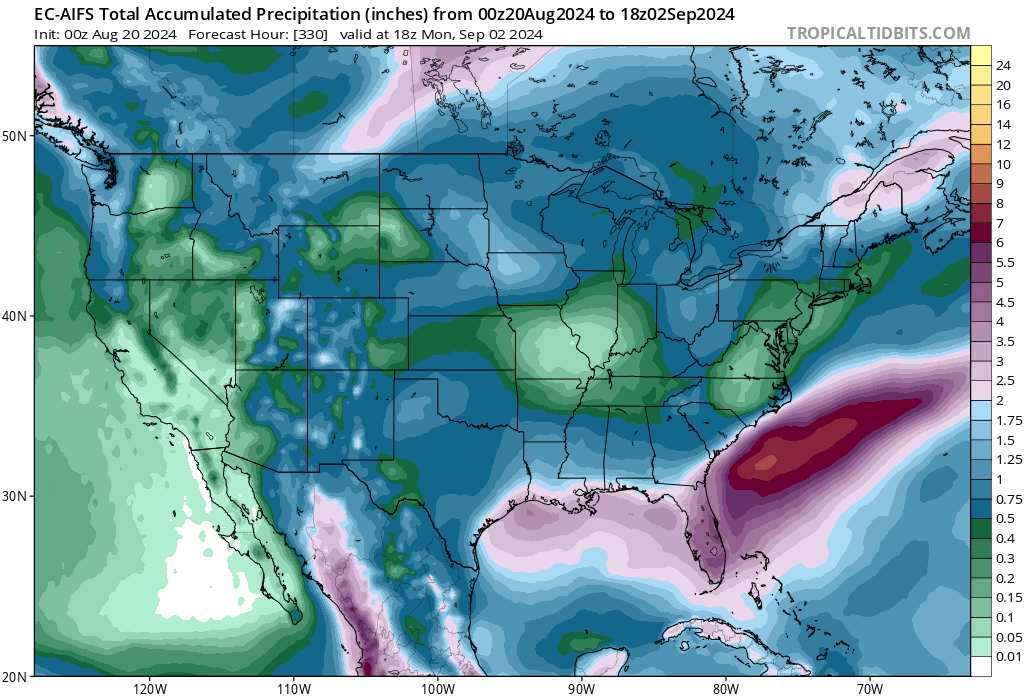 Yes - my lawn, trees are frying.Pas_Bon wrote: ↑Tue Aug 20, 2024 2:32 pmYes, please. Please do.Stratton20 wrote: ↑Tue Aug 20, 2024 1:37 pm The euro tries to “ strengthen “ our mid level disturbance thats moves in from the eastern gulf, right at landfall, maybe a weak tropical low/ very weak depression