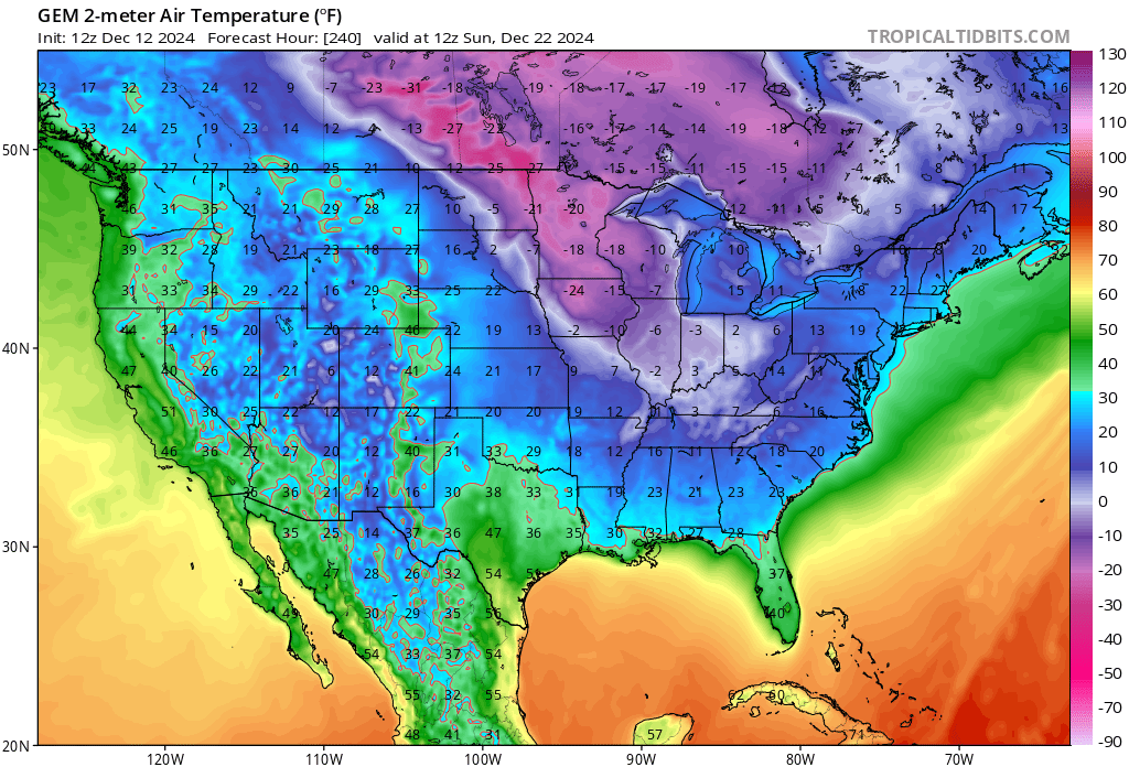 I should add that the Canadian sees a winter storm in Arkansas about the 19/20th, with the FROPA, that becomes a fierce Nor'easter.