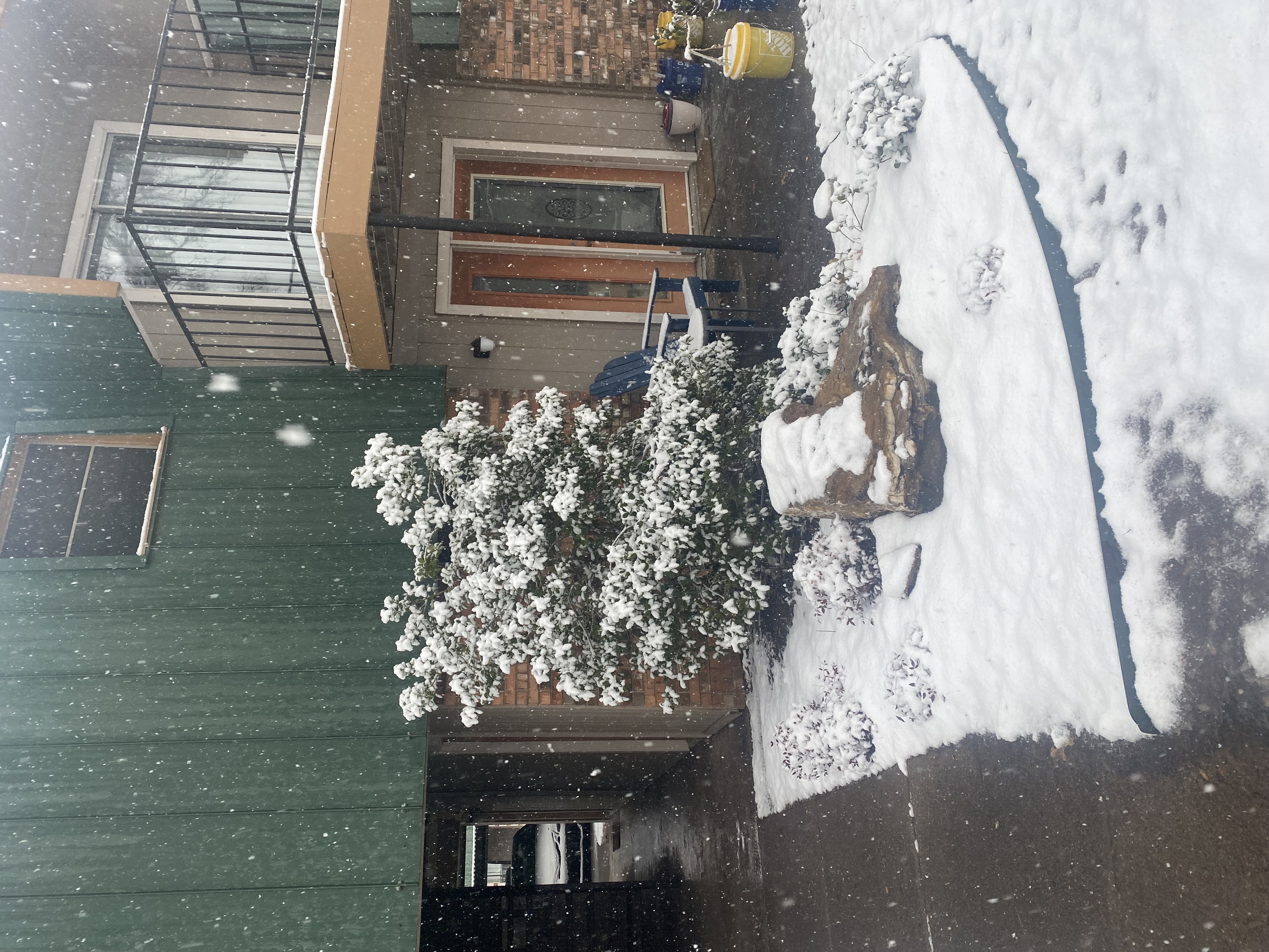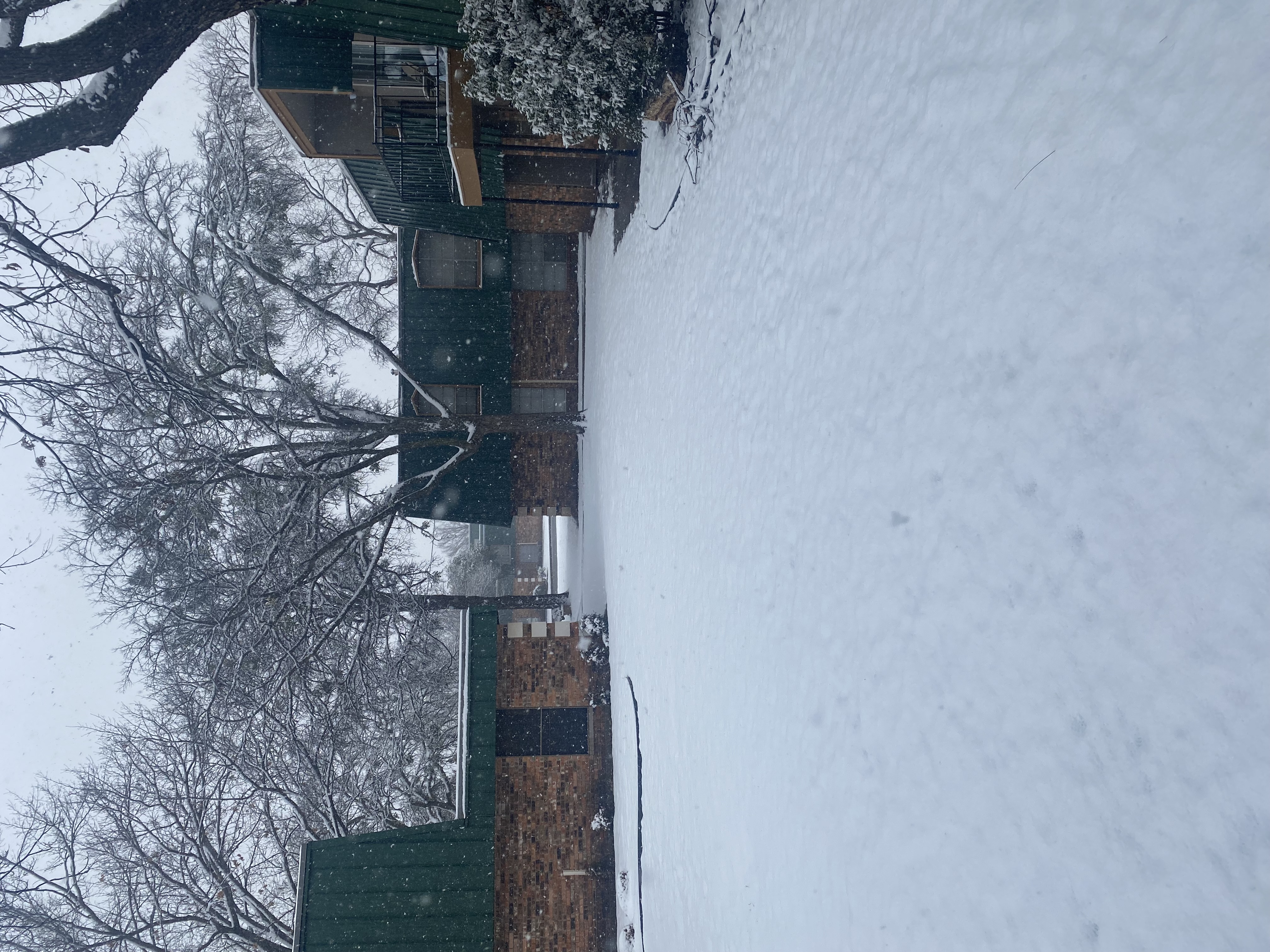 My Dad is Allen is reporting 32 degrees with 3-4” of snow.