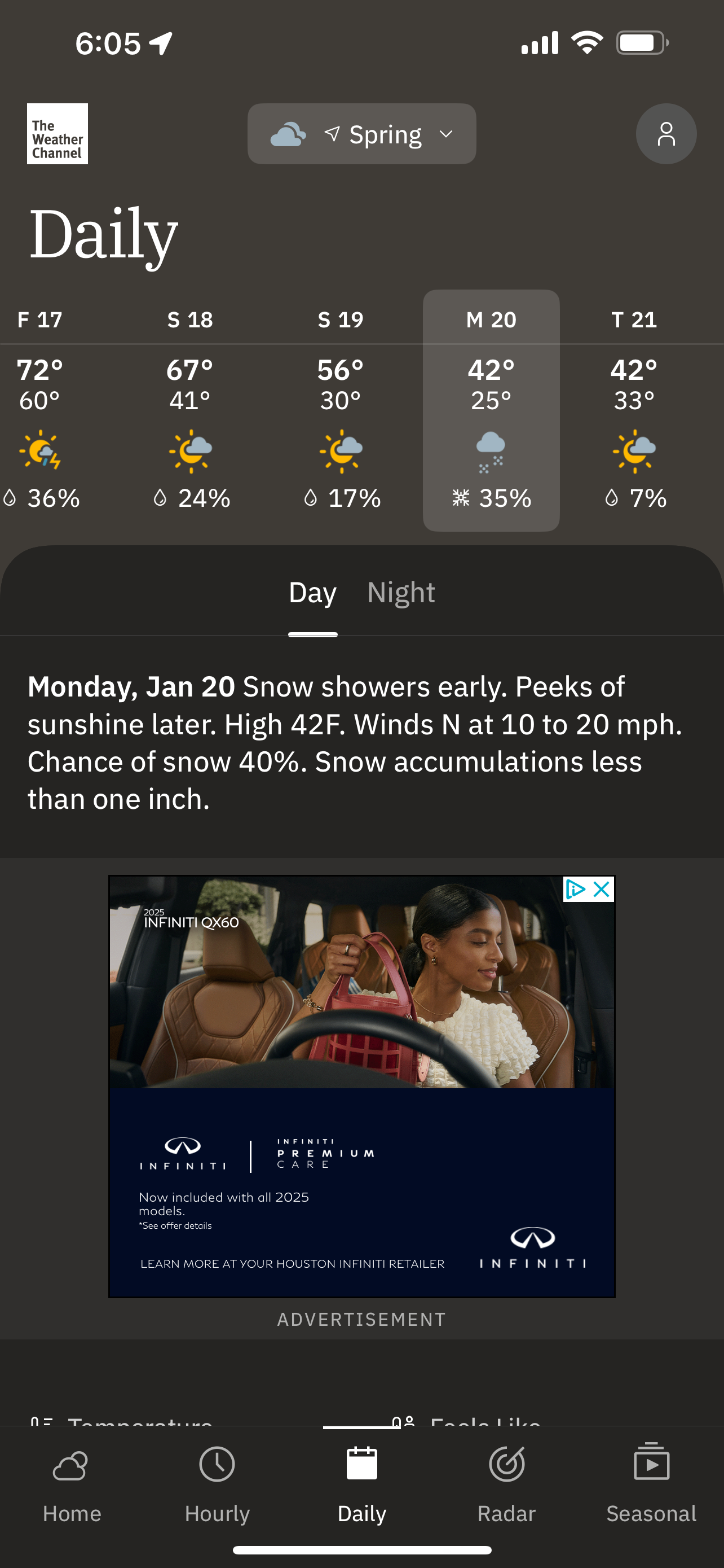 Good approach.tireman4 wrote: ↑Sun Jan 12, 2025 12:54 pmchristinac2016 wrote: ↑Sun Jan 12, 2025 12:15 pm I have runner friends doing the Chevron next Sunday. They’re watching the weather. What does it look like?