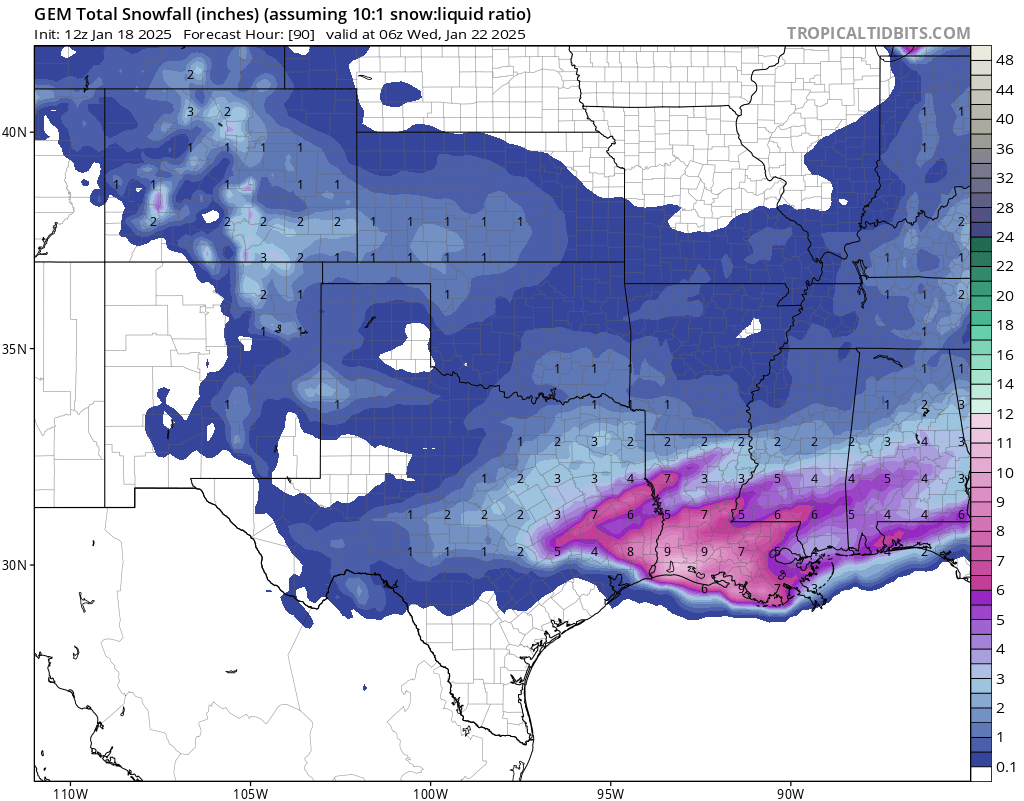 Stratton20 wrote: ↑Sat Jan 18, 2025 11:35 am 12z Euro definitely increased snowfall across se texas, 4-6 inches on 06z run to now 5–9 inches across a good majority of se texas, and that falls on top of ice and sleet