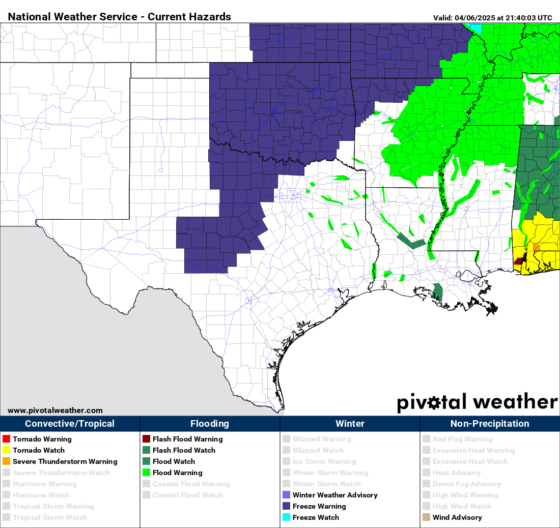 Yep not everyday you see freeze warnings all the way into the Hill Country in the 2nd week of April.