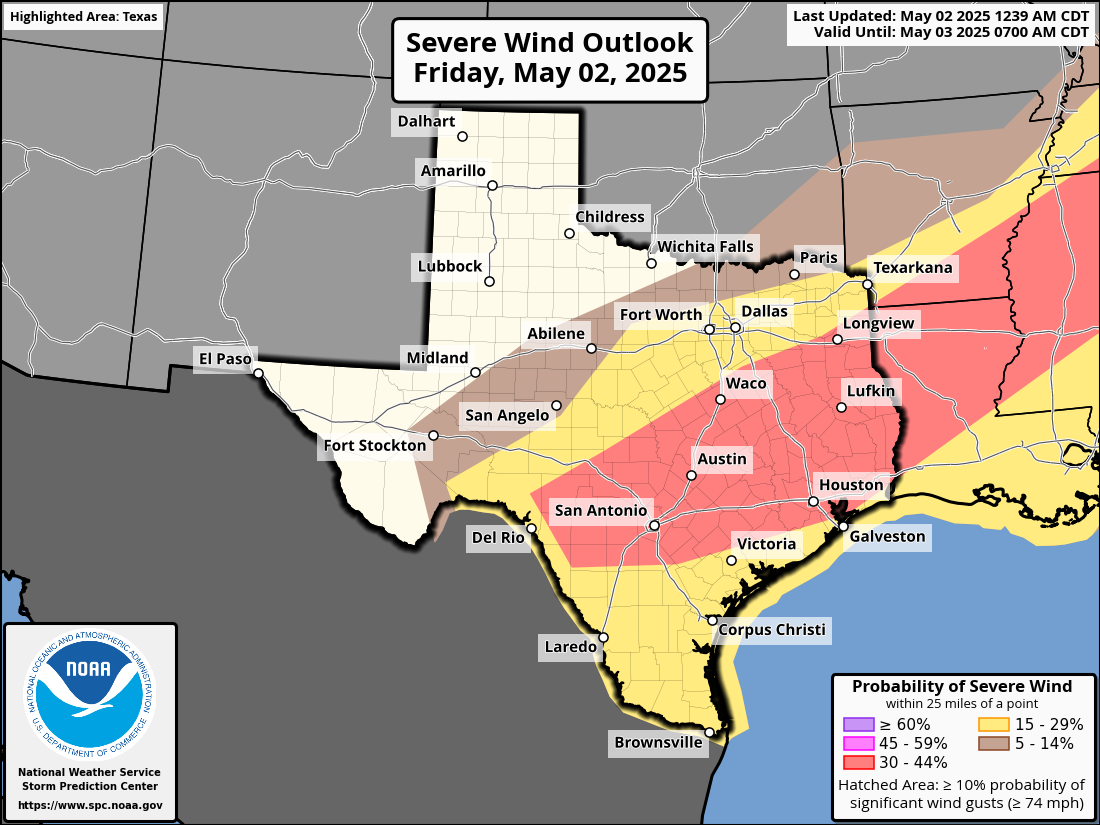 SPC has most of SE Texas under an Enhanced (level 3/5) Risk for