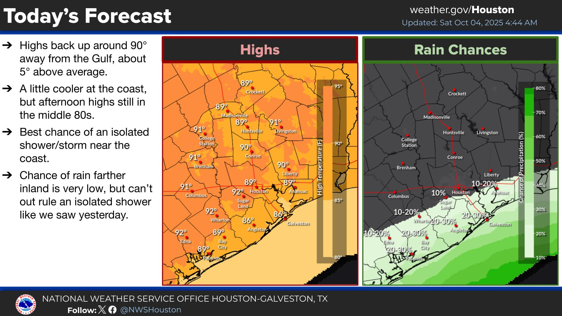 Usually we get a pretty good front towards late October, so I wouldn’t expect anything till then.tireman4 wrote: ↑Fri Oct 03, 2025 9:20 am I will say this. I remember October 2004 ( my first year of marriage), it was abnormally hot. In fact, it is still the hottest October of all time. Halloween was brutal at 88 degrees. Ridges do happen, all the time. Eventually, the heat will be dislodged ( Meteorology 101, the earth/weather always likes things equal) because the colder air up north will push down toward us. Until we have that real strong front, we will deal with this.
