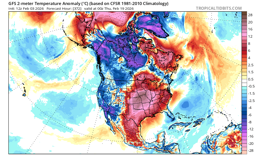 GEM and Euro are in general agreement. It's a ways off.noclueaboutweather wrote: ↑Tue Feb 03, 2026 3:17 pmI'm supposed to believe the GFS blowtorching the entire Continental US when not 4 days ago they had us buried in 2 feet of snow on the Monday before this? Pish posh