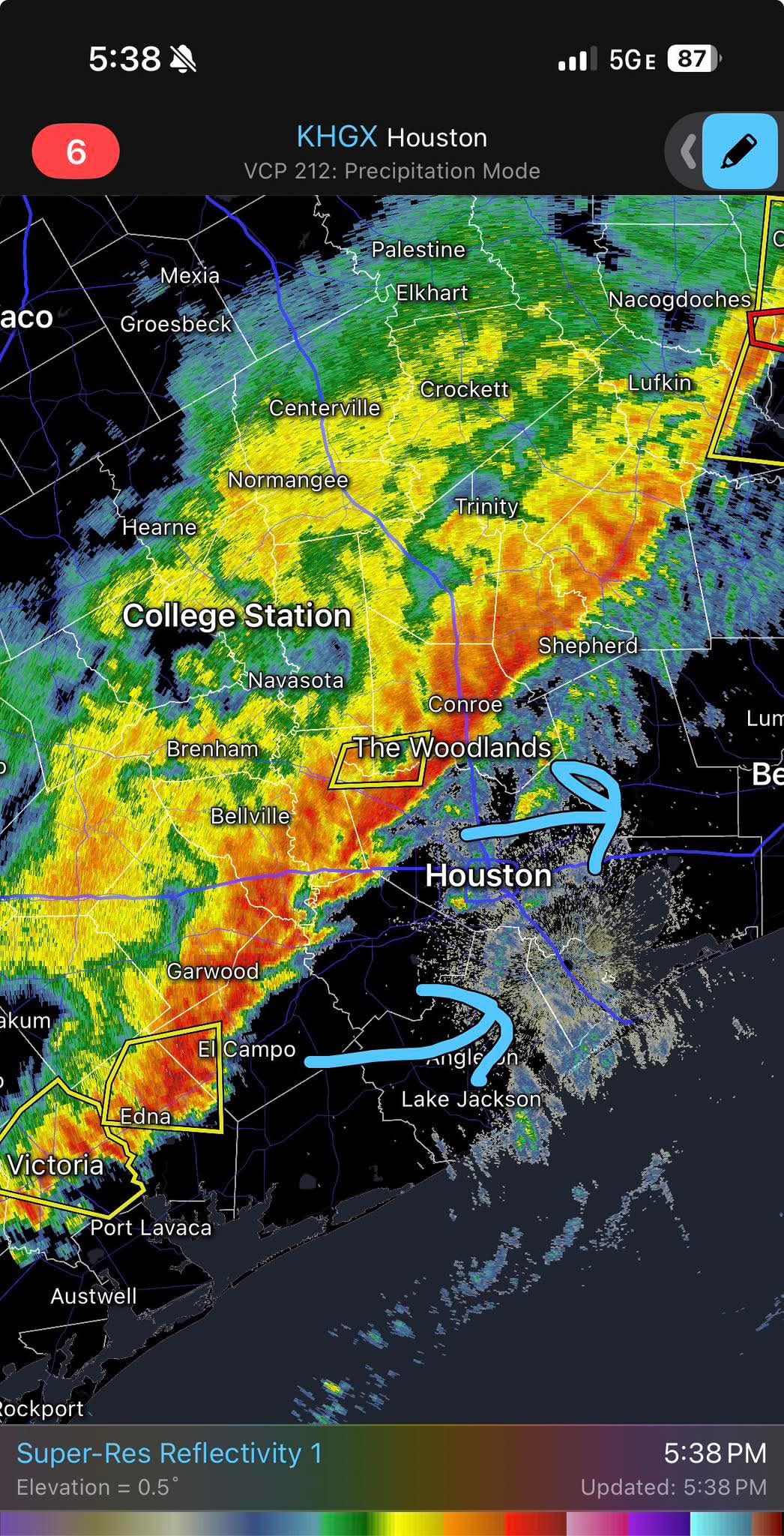 That hail core cell south of Navasota and curving right... and the one north of Victoria should be watched closely.