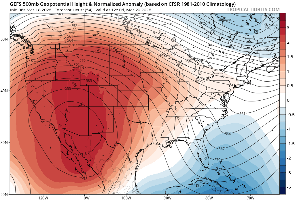 Here at the Western ridge.TexasBreeze wrote: ↑Tue Mar 17, 2026 6:09 pm To have a ridge be above 594 DM heights with 100/110 degree temps beneath it is serious business for mid March! So thankful for the current weather around here for sure!
