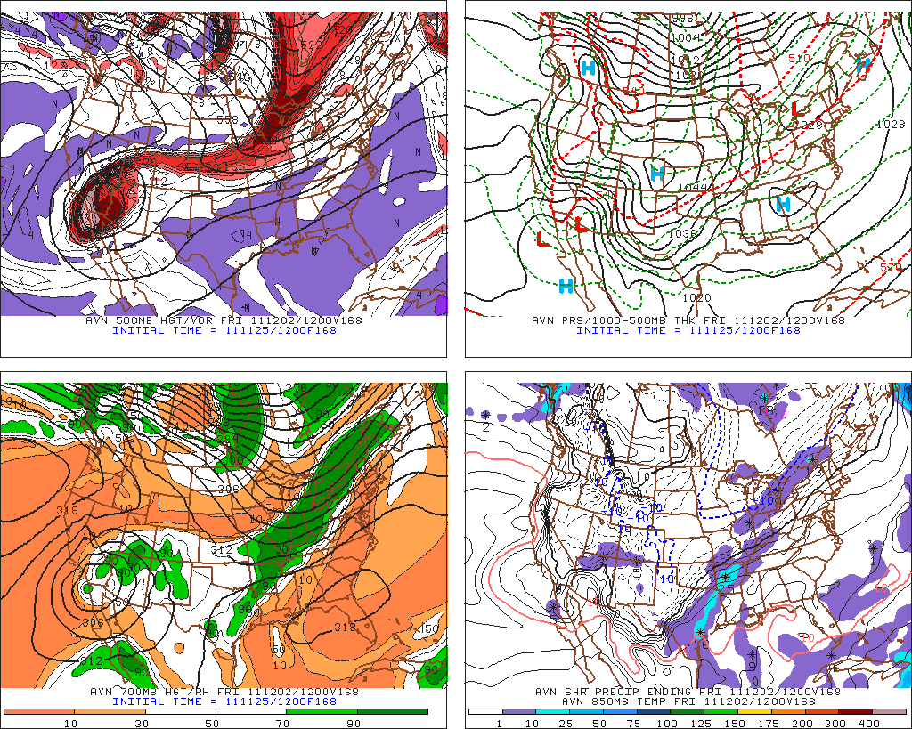 It looks like the first weekend in December will bring a rather strong cold front into the Intermountain West/Plains region. The does appear to be a brief warm up for Wednesday/Thursday before that stronger front arrives. The fly in the ointment will be another cut off Upper Low in the Desert SW and just how fast that feature ejects E. If the low is progressive as the overnight GFS suggests, then a brief cold shot could be expected. The problem is the GFS has been a bit too progressive with the pattern of late and that tends to give some attention to the Euro/Canadian evolutions. That said, all the guidance has struggled with anything beyond 3 days, so we'll just have to see how things play out. It does appear we will have a brief 'warm up' on Thursday before the strong front passes. What remains to be seen, is what happens with that upper air disturbance to our W for next weekend...