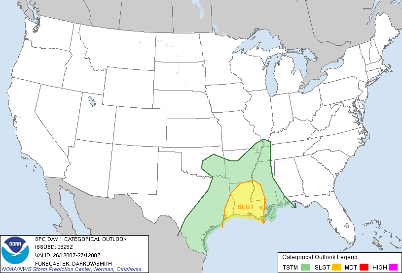...THERE IS A SLGT RISK OF SVR TSTMS FROM SE TX TO THE LWR MS VLY...