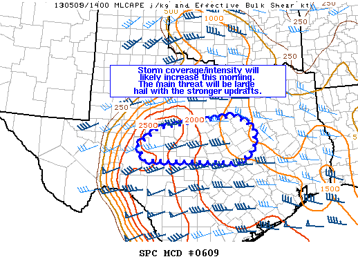 Recent short term models have suggested an increase in the severe threat for a larger part of SE TX this afternoon. Some of this is currently being driven by the formation of severe storms over W/C TX currently. Cloud cover over the region should keep instability on the lower side today along with the mid-level warm nose however should storms to our NW form into an MCS a threat for strong winds would be possible this afternoon north of I-10. Severe threat on Friday is conditional on the events today and tonight. Little change in the air mass would seem to support a risk of additional severe storms with hail and wind being the main threats. However, if an outflow boundary undercuts the unstable surface layer this could mitigate some of the severe weather threat on Friday. Once again I stress that meso scale influence will play a big role in developments over the next 1-3 days.
