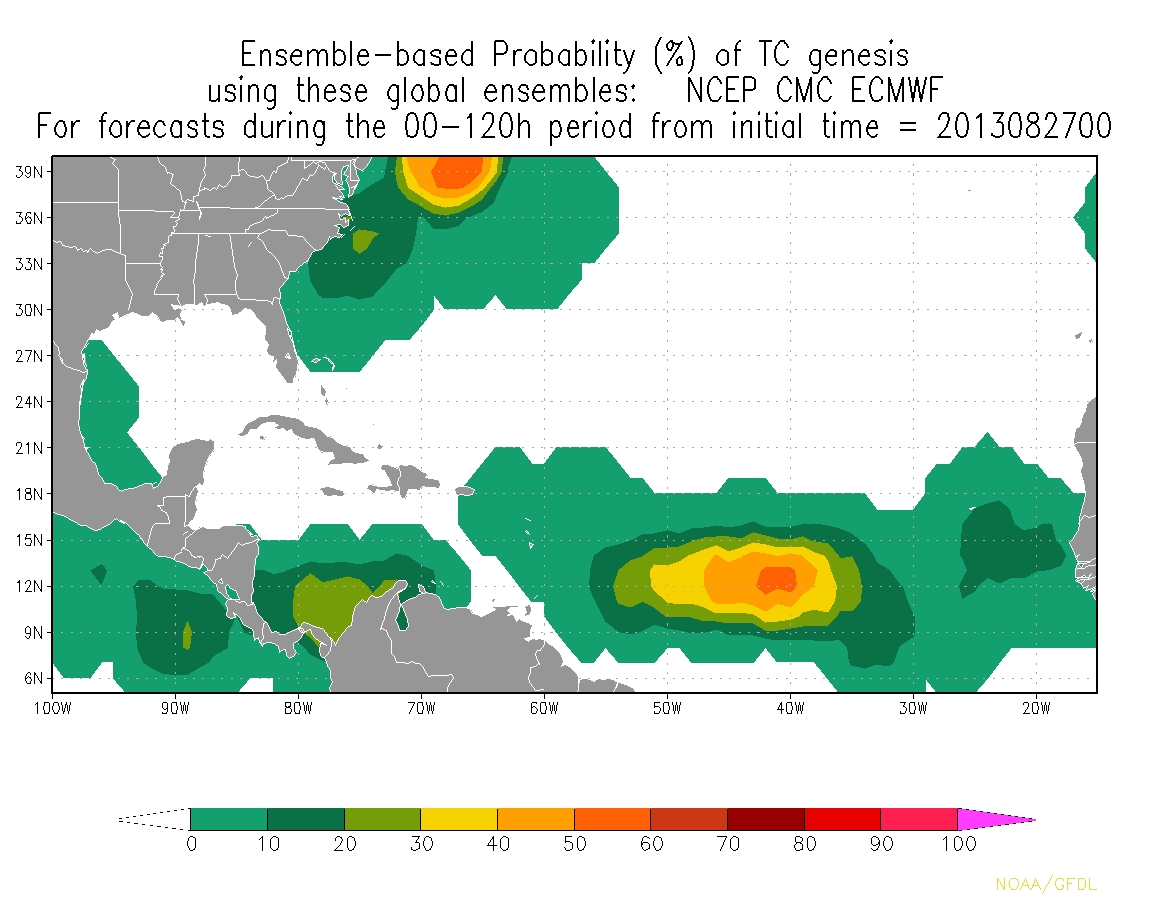 08272013 00Z Multi Model TC Genesis Probs genprob_4enscon_2013082700_altg_000_120.png