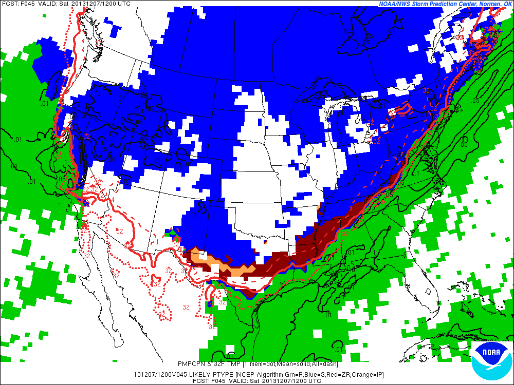 Based on everything I have looked at this afternoon the surface temperature is forecast to be in the 33-37 degree range Saturday into Sunday morning which does not support any ice accumulation. Would not be totally surprised to see the far W/NW/N parts of the county drop to 32 or 31 Sunday morning, but think any icing will be very minor and short lived.