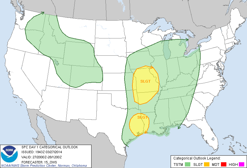 ...THERE IS A SLGT RISK OF SVR TSTMS ERN TX INTO THE LOWER MS