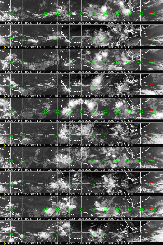 Convection associated with 94L is confined well to the S (below 10N along the monsoonal trough/ITCZ) of the surface analysis of the low center. Dust continues to be an issue N of the disturbance, but further W and closer to the Windward Islands that becomes less of an issue. Yet another easterly wave is nearing the Atlantic from Western Africa and should drop SW as it continues westward today. MIMIC does show a rather robust precipitable water envelope associated with 94L. The only global guidance indicating any potential of TC genesis is the UKMET and that occur later in the period as 94L enters the Caribbean Saturday night into Sunday. The global guidance does suggest the Bermuda Ridge may build back W and allow this disturbance to continue tracking W across the Caribbean Sea into mid next week. There is no threat of development in the near term as of this time.