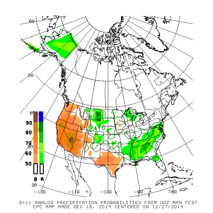 One run from the GFS yesterday showing 1-3 inches of snow was enough to get some chatter going. All I see via the ensembles which tend to be much more reliable than any individual operational model run that changes every 6 to 12 hours and offers a different solution each run is pretty much useless beyond a day or two. Those ensembles do suggest a West Coast Ridge develops building into Alaska and Western Canada beyond Christmas, but even the ensembles are struggling with the Pacific pattern and the sensible weather we may expect. There is a 180kt to 190kt jet screaming E across the Central Pacific that spells computer model volatility and a lot of flip flopping. The GFS is useless in my opinion and even the new upgraded parallel GFS is scoring very poorly. We will see what happens later this week and if the computer models are even somewhat close to the 1-3 inches of rain they are spitting out. My hunch is those amounts are way over done across Texas. I am just hoping these storm systems bring snow to the Northern New Mexico Mountains were I'll be a month from now on vacation. The snow and cold can stay in the Mountains were it belongs as far as I'm concerned..