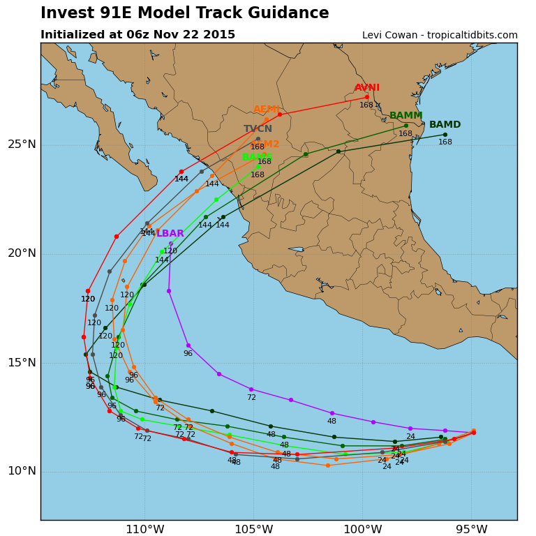 To further complicate things, rich tropical moisture over run the shallow cool airmass at the surface from both the Western Gulf and the Eastern Pacific were tropical disturbance 91E is expected to become TD/TS Sandra and possibly develop into a Hurricane as it re curves toward the Southern Baja Peninsula this weekend. Heavy snow is likely across the Mountains of New Mexico with freezing rain or sleet possible across Eastern New Mexico into the Panhandle. Heavy elevated storms appear likely across portions of the Hill Country, N Central, SE, E and NE Texas into Western Louisiana and Arkansas as the mid/upper level moisture associated with the remnants of Sandra spreads NE out of Mexico. Those with travel plans returning back to Texas this weekend will need to monitor the weather closely this week as the sensible weather forecast becomes clearer. Safe travels to those heading out for the Thanksgiving Holidays and stay tuned to those staying home later this week.