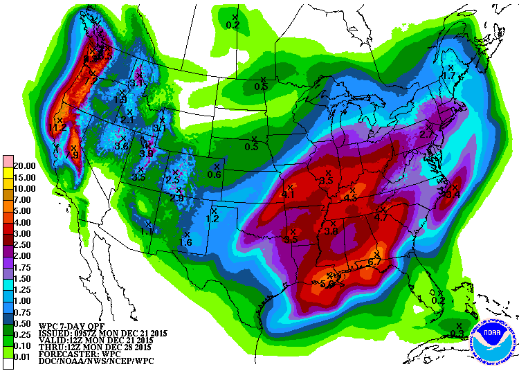 The overnight guidance continues to advertise a very active and stormy pattern developing as we head toward the New Year. The main concern during the short to medium range continues to be the threat of heavy rainfall and the potential for thunderstorms, some possibly severe including all modes of severe weather during the hectic Christmas Holiday travel period. I am going to look primarily at the week ahead and just beyond Christmas Day in the first section of this update, but will take a look at some indicators of what may be ahead as we turn the calendar into January in the second section of the update.