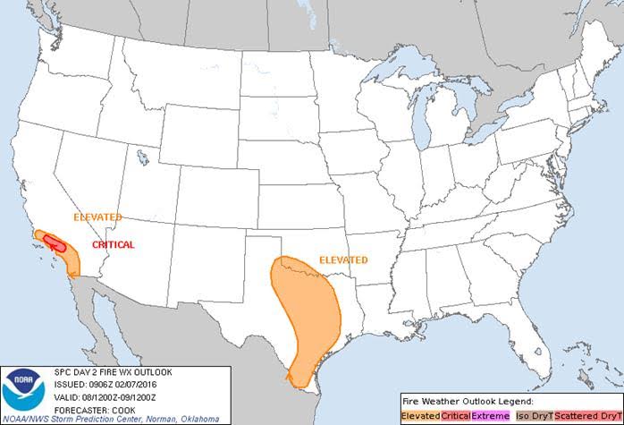 A Fire Weather Watch is in effect from Monday morning until 700pm Monday for all of SE TX and much of central and south TX.