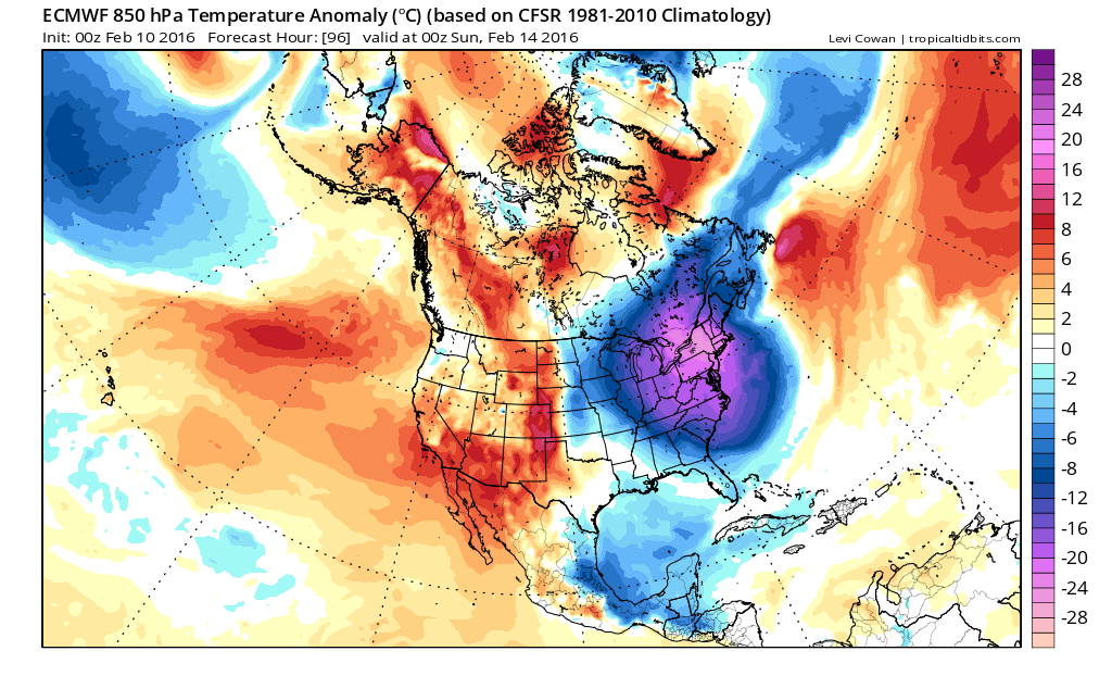 Some of the indicators we look to in the longer range are really keying in on a potential wet pattern developing as we near the end of February and begin March. The MJO forecasts are beginning to suggest a very high amplified orbit into a wet Phase 7/8 across the Pacific that could bring a returned of an active Pacific stream of tropical moisture with lowering pressures across California, The Desert SW and Texas. In the shorter range, the guidance is suggesting a stalling frontal boundary across SE Texas Saturday into Sunday as an upper air disturbance embedded in a deepening trough across the Eastern half of the United States sets up. This disturbance should bring a chance of rain to our area and possibly a lot of wintery weather to our N and E as temperature anomalies near the -20 degree range. The coldest air of the Winter Season appears poised to spill out of Canada in the Upper Mid West/Great Lakes/Ohio/Tennessee River Valleys and possibly into Florida this weekend.