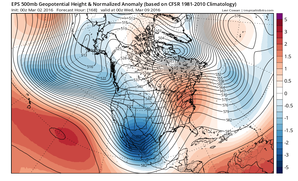 Next week appears to have a lot of potential for strong, possibly severe thunderstorms across a good portion of our Region. We will need to monitor developments the next several days and seeing such a deep Western trough in early March with unidirectional winds at many levels tends to suggest a severe weather outbreak may be possible particularly along and East of the dryline across portions of Oklahoma, Eastern Texas into Arkansas and Louisiana.