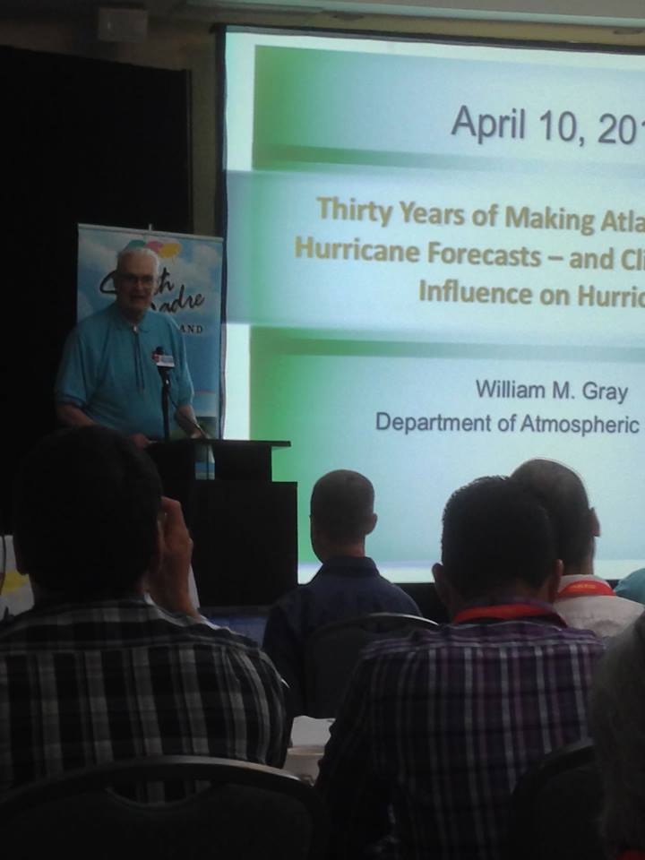 I was sadden yesterday to hear the passing of an icon in the tropical weather world. Dr. William Gray is a legend in the hurricane research world. Here are a few photos of Dr. Gray at the 2013 National Tropical Weather Conference in South Padre. Photos to post of the 2016 National Tropical Weather Conference but for now will dedicate this thread to Dr. Gray for another day.
